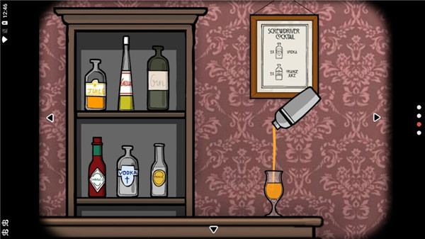2、拼图得出密码开钢琴旁边的柜子,得到调酒方子,喂低落男人一大杯,获得血,用来调血腥玛丽,再喂男人;