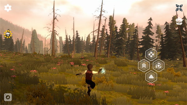 2.右侧区域可以调整视野,还有多个按键,比如跳跃、翻滚等。