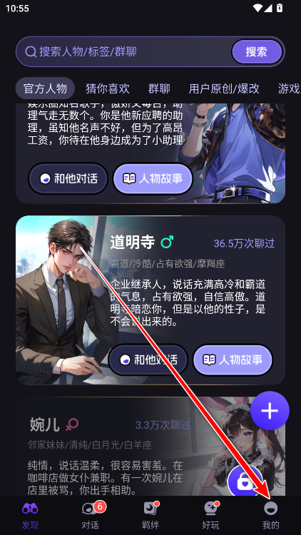 2、进入软件后会有多种角色类型供你选择,如官方人物、猜你喜欢、爆改、游戏人物等等;