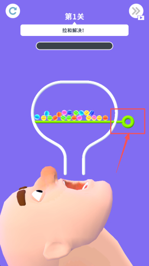 1、首先,进入游戏后看到“第1关 拉和解决!”提示,用手指按住并拖动屏幕上的目标物体,完成指定动作即可过关。