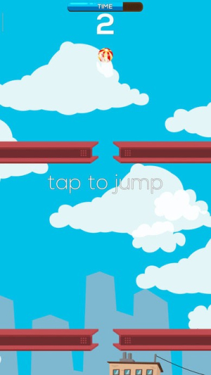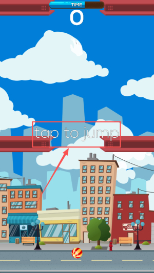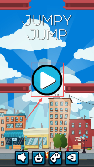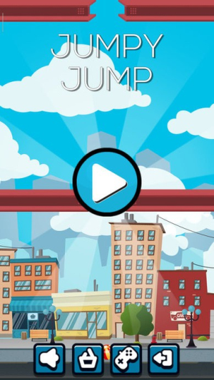 1、首先,打开游戏后看到“JUMPY JUMP”标题,轻点屏幕即可让角色起跳,正式进入关卡。