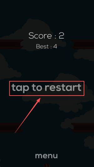 4、最后,若角色掉落,界面会提示“tap to restart”,点击即可快速重开;若想退出,选择“menu”返回主菜单即可。