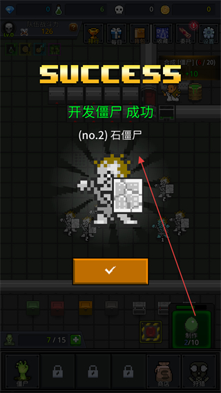 3、合成后开发出高等级僵尸如石僵尸,提升队伍战力。