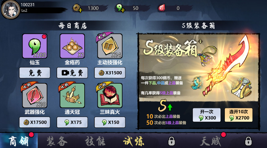 2、凡人要修仙有各种各样的装备可供获取,包括武器、防具、饰品等,玩家可以通过打宝、任务奖励等方式来获得装备。