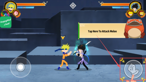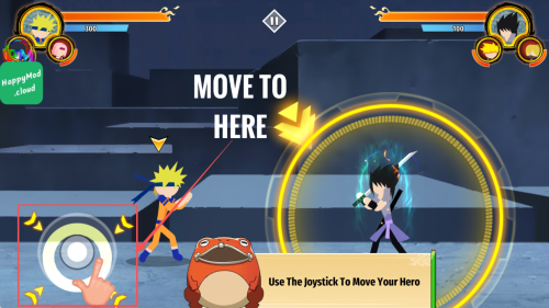 2、移动角色:使用左下角的虚拟摇杆控制角色移动,按照提示“MOVE TO HERE”接近对手。