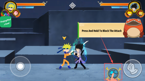 4、防御动作:在对手攻击时,长按防御按钮“Press And Hold To Block The Attack”进行防御。