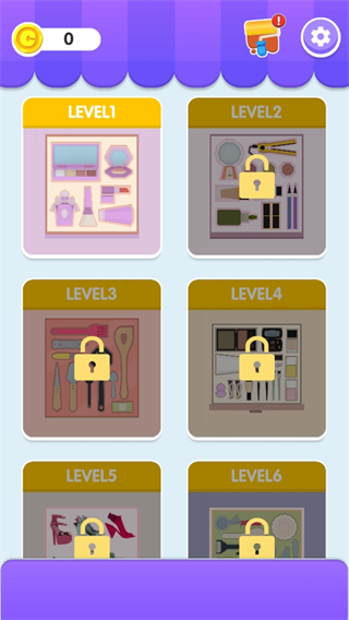 3.在选择关卡页面,玩家点击“锁”,可以解锁新的关卡,完成不一样的任务,体验清扫、制作、分类等玩法。