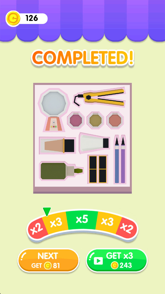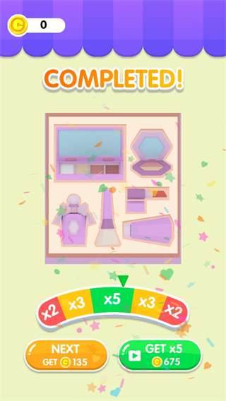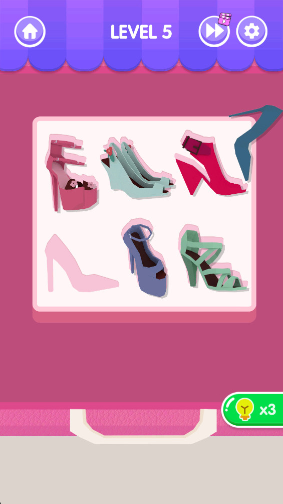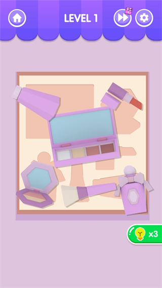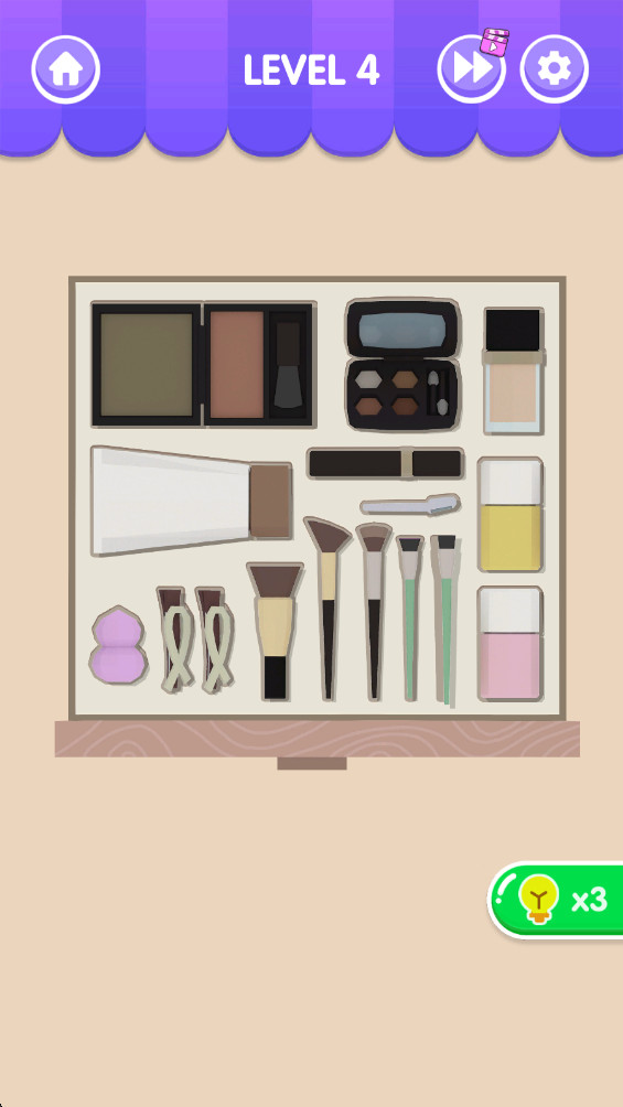 4.每一个关卡的内容都是不一样的,玩家可以根据物品的大小与场景中盒子的大小来摆放,也可以长按物品移动它们摆放。