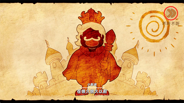2、点击右上方的不听不听,快速跳过游戏剧情;