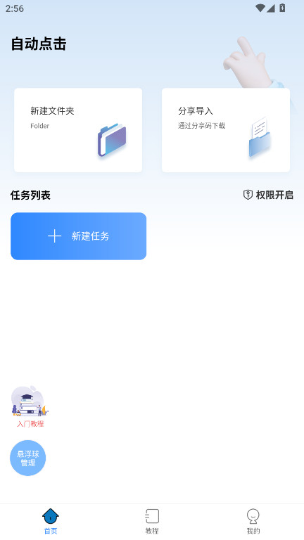 1、打开自动按键点击app,进入软件后授予软件运行所必需的权限,在首页的“任务列表”下点击“添加任务”,输入任务名称,点击确定即可进行下一步;