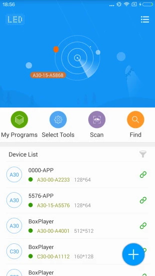 3.添加设备:可以添加一个需要远程控制的LED显示屏,在手机上控制;