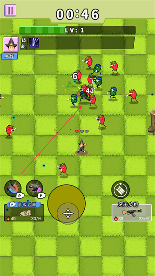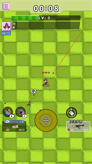 1、操控角色在绿色格子地图中移动,用突击步枪攻击怪物,注意保持移动躲避怪物攻击。