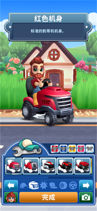 内置菜单支持解锁不同类型割草机,涵盖速度型、宽幅型等,部分机型还带有特效加成,升级后割草效率与视觉体验同步提升。