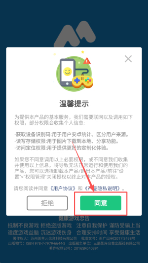 1、首先,阅读并同意《用户协议》与权限说明,点击「同意」进入主界面。