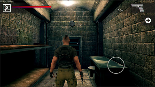 4、剧情完后,你被关在一个监狱里,你需要逃出来。通过滑动左边控制人物移动,右边控制射击。