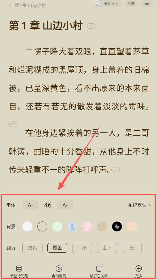 4、找到喜欢的小说后直接点击封面就能开始阅读,阅读时你可以调整字体和亮度,继续下滑就能顺畅地追更后续剧情了。