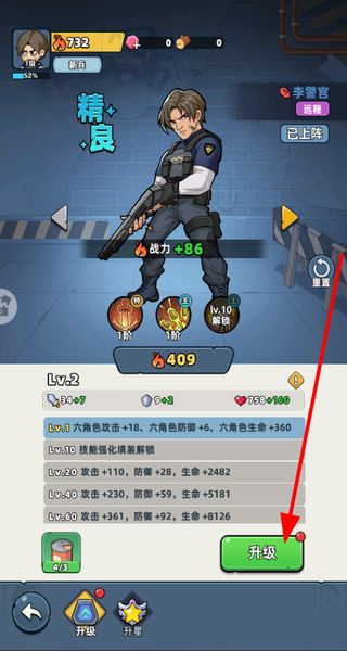 4、为李警官等角色升级,提升攻击、防御等属性,增强战力,保障生存,丰富养成玩法。