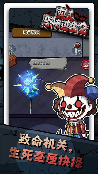 - 双人恐怖逃生2是一款主打惊险体验的休闲冒险类,核心围绕双人协作逃生展开,可以匹配队友共同开启冒险之旅,进入指定房屋后,需要与队友一同寻找关键元素