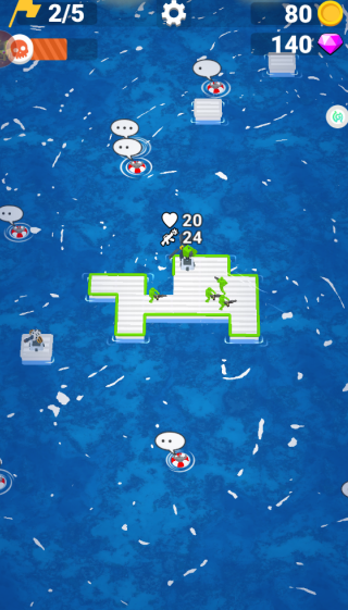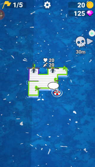 4.不断的扩大你的木筏,救起海中的人员,获取炮塔,射击沿路的敌人。