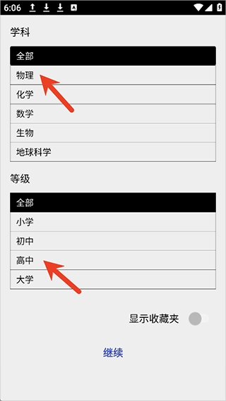 2、也可以按照学科等级进行筛选,例如高中的物理实验