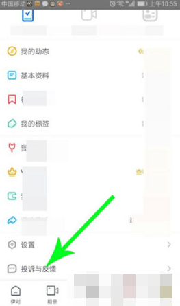 3.在【我】的界面向下滑动,然后点击【投诉与反馈】。