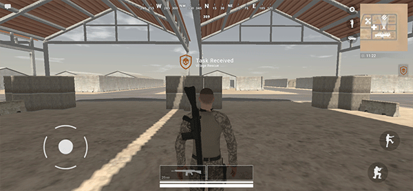 4、在游戏中利用左下角摇杆操控角色移动,点击枪图标即可使用