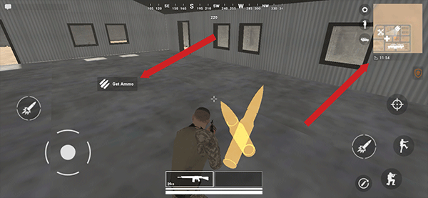 5、刚进入游戏的地方为我方区域,你可以根据地图位置进行弹药补给、使用汽车、补血等等,例如补弹药,在弹药位置后点击get ammo即可补给