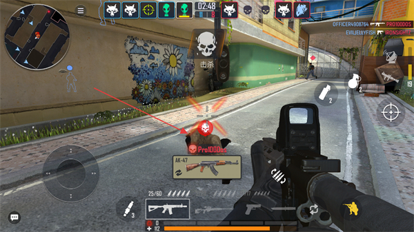 4、持续战斗,完成双杀等连杀操作,同时可拾取敌人掉落的AK-47等武器增强战力。