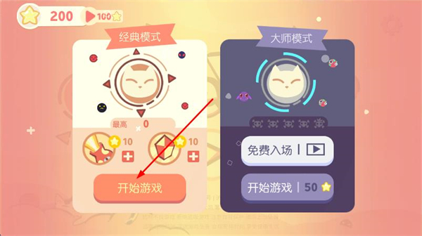 游戏的核心玩法就是保护猫咪免受威胁物入侵,抵挡的威胁物越多,分数就越高,从而解锁更多的游戏模式。目前开发组开放了经典模式、大师模式。经典模式主要给于新手进行体验和练手,方便手残党和新手党快速学习和成长。