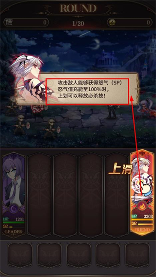 3、当怒气值满时,上滑需要出战的角色即可释放必杀技。