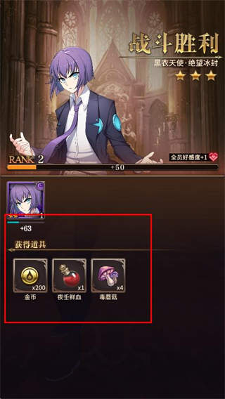 4、战斗胜利后,可以在结算页面查看 获得游戏道具。