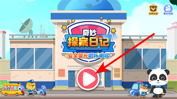 1、进入游戏界面后,点击播放按钮开启奇妙探案冒险,这是进入游戏的关键操作,准确点击才能解锁画画、探案等趣味场景。