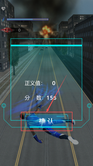 4、结束游戏:游戏结束后,点击“确认”按钮,查看得分和正义值。