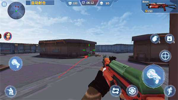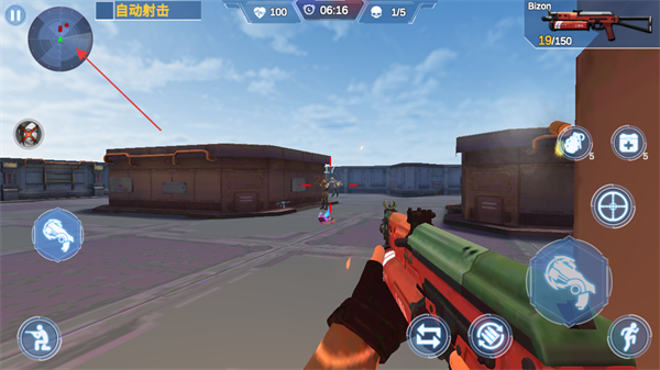 1、利用左侧虚拟摇杆移动角色,在战场中寻找敌方目标,借助自动射击功能发起攻击。