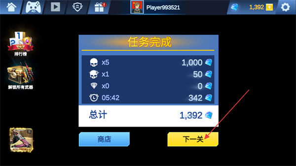 4、完成任务后获取钻石、金币等奖励,点击下一关继续挑战更高难度的关卡。