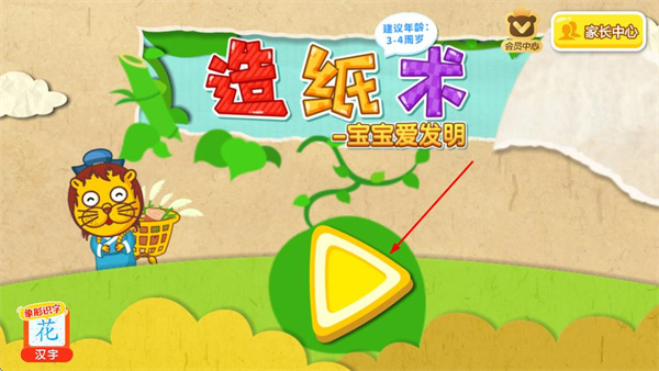 1、点击黄色三角形开始按钮,进入造纸术游戏环节。