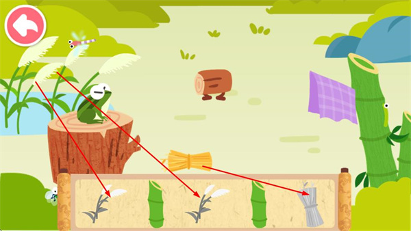 3、依次点击对应图标,收集芦苇、竹子、捆扎的原料,完成材料收集。