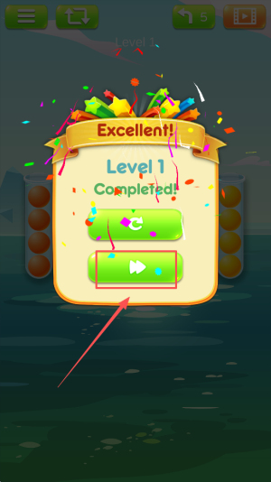 4、失败或无步数时点“重试”再来,通关后自动进下一 Level。