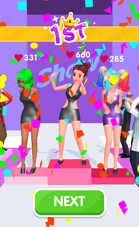 4、获得【1ST】排名后,点击【NEXT】按钮,继续参与下一轮时尚设计挑战。