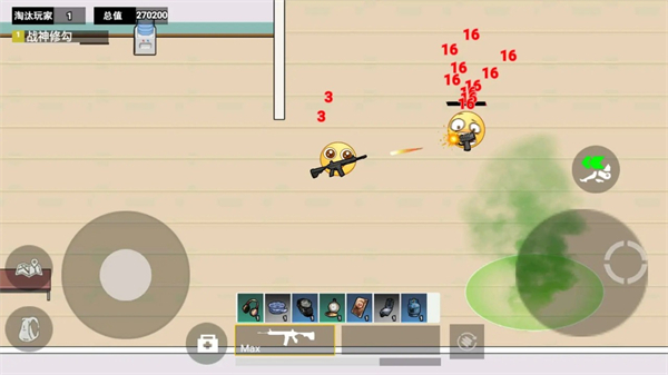 2、拾取武器后,攻击敌人,积累总值,提升自身战力。