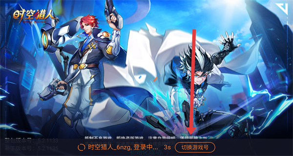 1、在时空猎人登录界面,点击切换游戏号按钮。