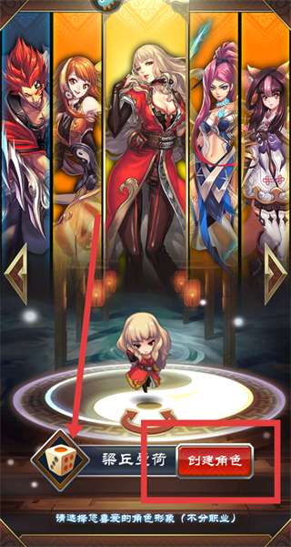 2、可以通过点击屏幕进入游戏,进入角色创建界面。