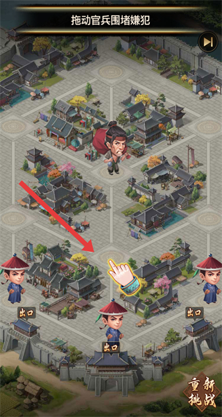 3、可以通过拖动官兵,对犯人进行封堵,缩小犯人逃跑线路。