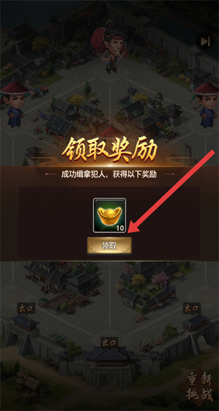 4、在成功缉拿犯人后,即可点击领取按钮,收取奖励。
