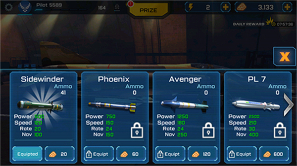 4、点击下方的购买按钮,即可完成导弹购买,提升战机的空战能力。