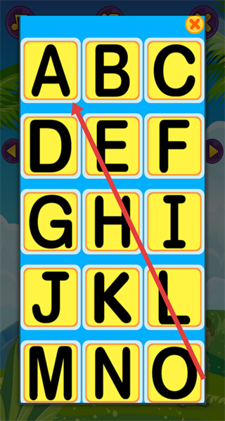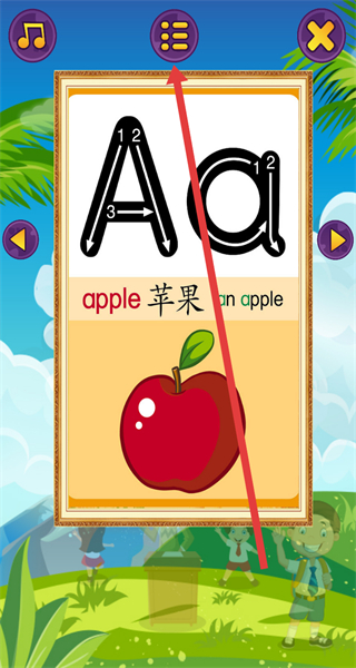 3、在字母认知卡界面,点击上方的列表按钮,可查看字母列表。
