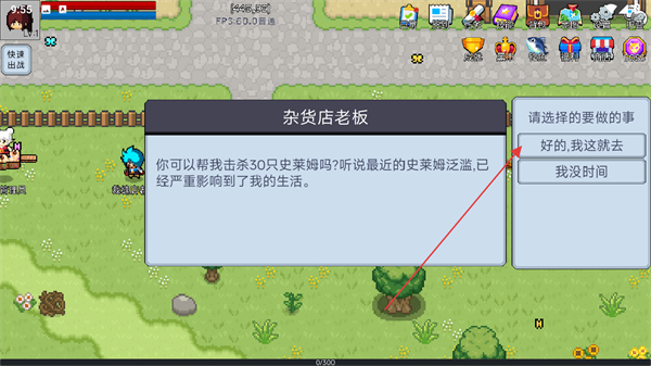 2、接受杂货店老板的任务,击杀指定数量的史莱姆,推进剧情。