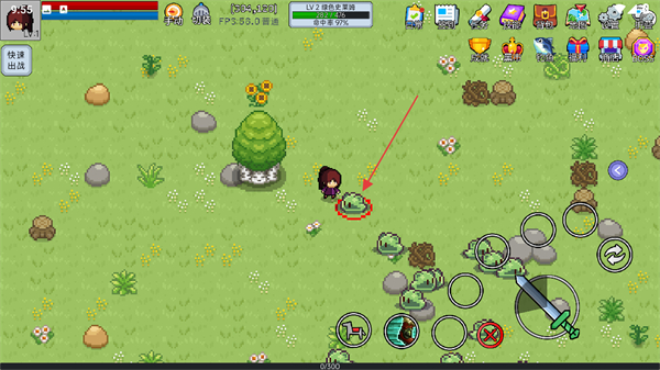 3、在野外寻找史莱姆,发起攻击,积累经验和金币。