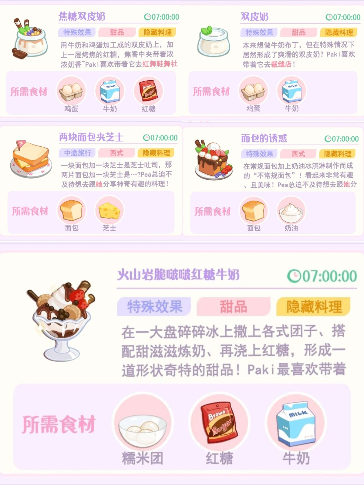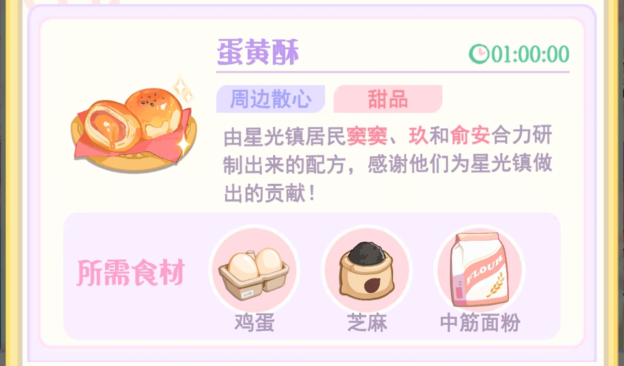 在游戏的购物区域中,您可以找到名为“啾啾”的美食部分。将页面滑动至最下方,您将能够购买所需的食材,例如高筋面粉等常用食材。以下是一些食材的上架信息和价格: