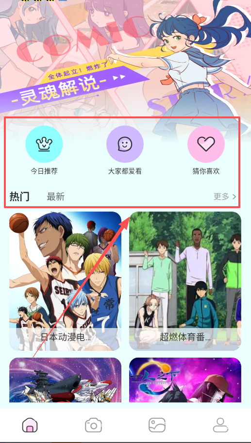 1、在主界面可以看到今日推荐、大家都爱看和猜你喜欢等栏目,通过热门、最新、更多等标签筛选内容。